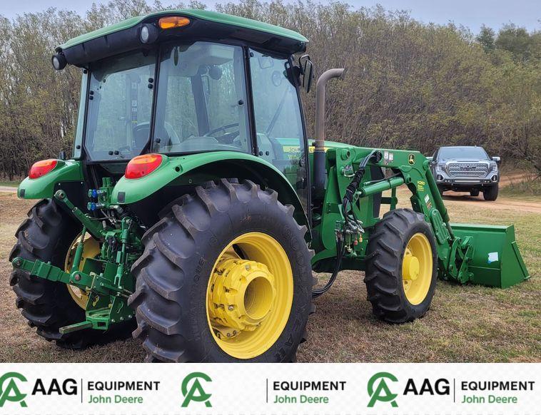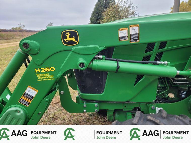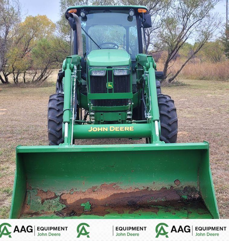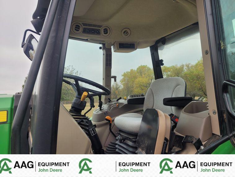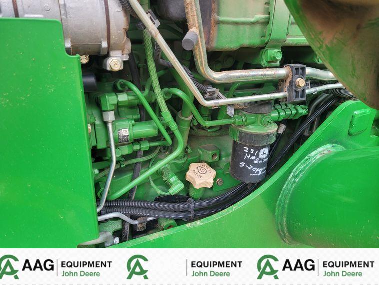 Only 383 hours, powered by a 6-cylinder John Deere diesel engine with 12F/12R synchro transmission and left-hand reverser. Features include A/C and heat, 540 PTO, three-point hitch with top link, and two rear hydraulic remotes. Comes with John Deere H260 loader, quick attach, joystick controls, and 73” bucket. Fitted with 11.2-24 front and 16.9-30 rear tires, in excellent working condition.