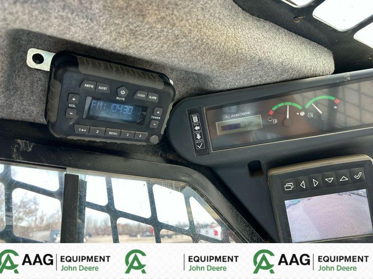 1,922 hours, powered by a 4-cylinder John Deere diesel engine with hydrostatic transmission and two-speed travel. Enclosed cab with A/C, heat, hand controls, pattern changer, and Electronic Monitoring System panel. Equipped with hydraulic quick coupler, auxiliary hydraulics, electrical outlet, and 80” bucket with bolt-on cutting edge. Strong 17” tracks, well-maintained, ready to work.